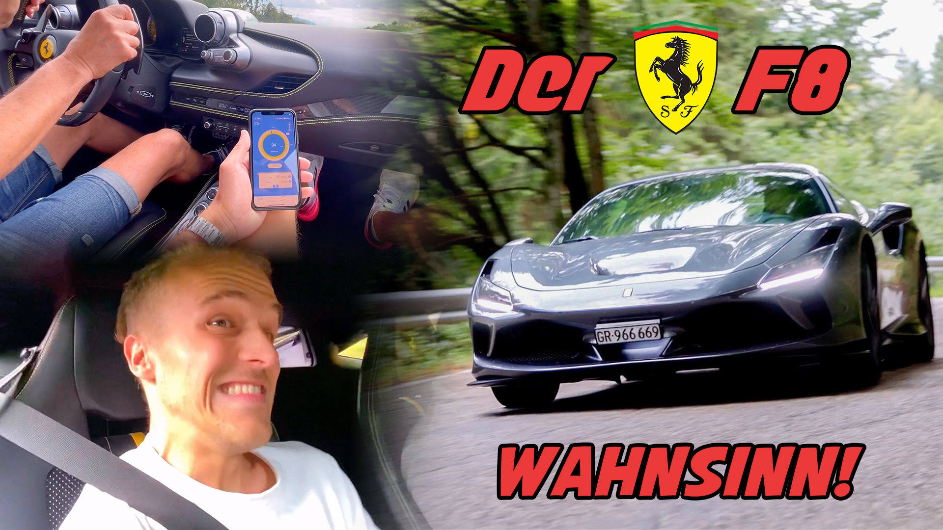 Heute gibt es richtig Action. Andrea gibt Vollgas in seinem traumhaften Ferrari F8 Tributo. Gemeinsam mit Flo´s 720PS BMW M5 F90 und Max 420PS Golf 7 GTI Clubsport, geht es über die Autobahn, wo wir herausfinde wie schnell der F8 von 100 auf 200 beschleunigt, ab in den Schwarzwald. Hier fühlt sich der F8 richtig wohl zeigt sein Potential, einfach nur WAHNSINN!